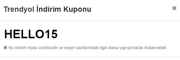 HELLO15 yazıp uygulattığınızda 15 tl değerinde kupon indirimi sağlanmaktadır.