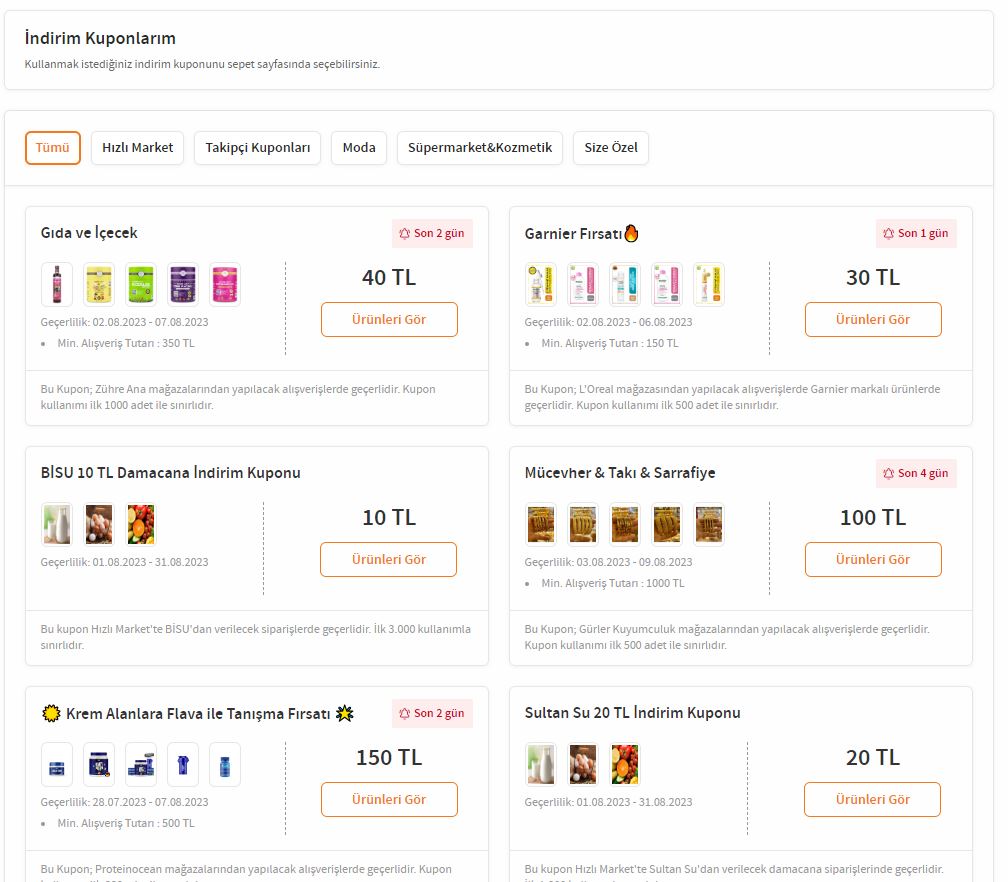 Kuponlar süreli oldukları gibi bir an önce denemenizi tavsiye eder, mevcut kupon indirimlerini takip etmek adınıza hesabınızı kontrol etmenizi öneririz. Satıcılar daha önceden alışveriş yaptıysanız size ekstra kupon tanımlayabilirler. Yorum yaparak kupon kazanabilirsiniz. Hedef kitle iseniz kupon kazanabilirsiniz. N11, hepsiburada, amazon gibi diğer e-ticaret sitelerinde de benzer özellikler olabildiği gibi bizce en avantajlı olan uygulamayı incelemeyi seçtik.